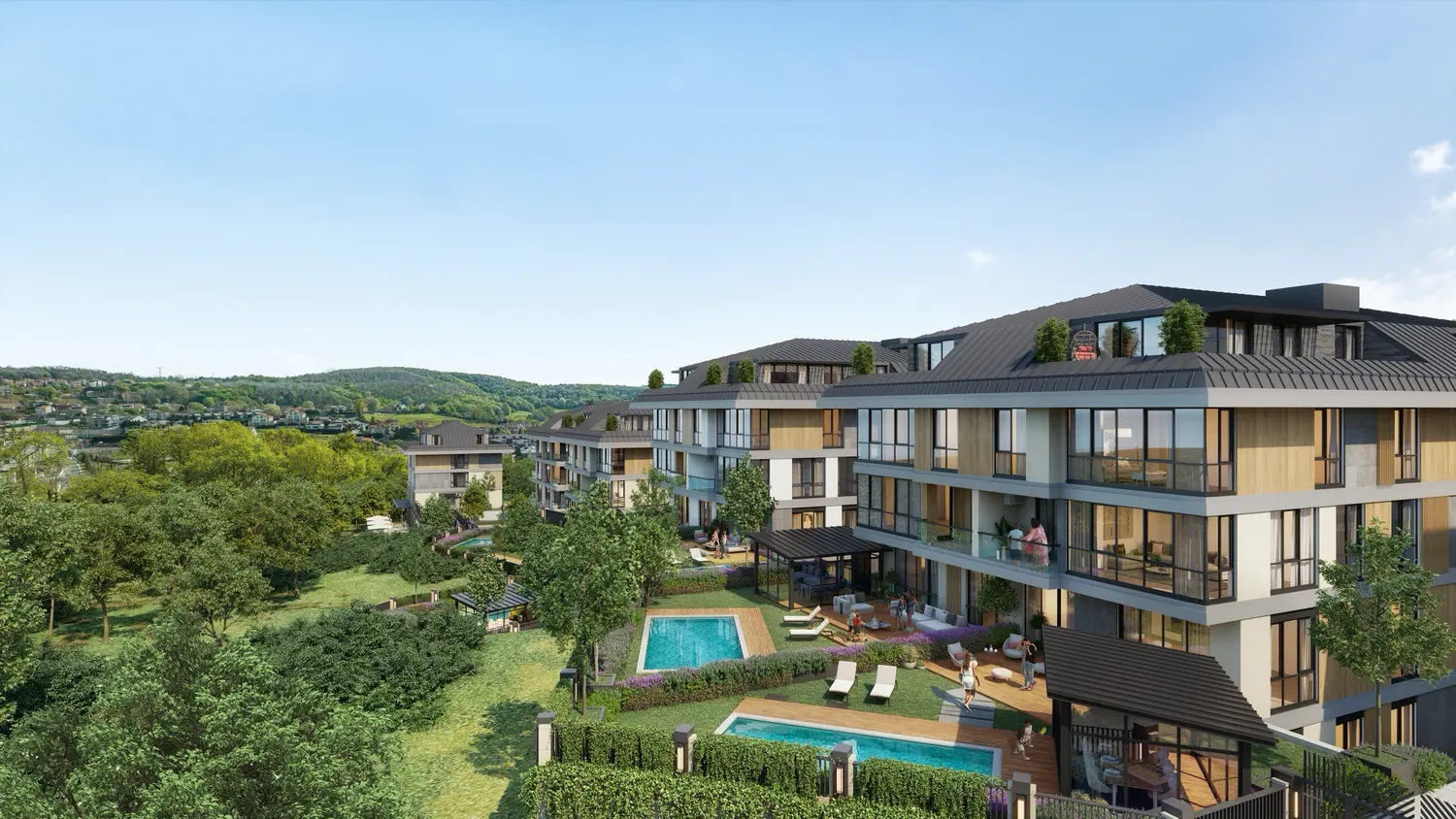 Projede yer alan özel bahçe havuzları, yalnızca yaz aylarında serinlemek için değil, yıl boyunca huzurla dinlenmek, ailenizle keyifli anlar geçirmek için bir fırsat sunuyor. Açık hava yaşamının vurgulandığı bu proje sayesinde, sabahları kuş cıvıltıları eşliğinde yürüyüş yapabilir, gün boyu doğanın içinde ama tüm şehir olanaklarına birkaç dakikalık mesafede yaşayabilirsiniz.